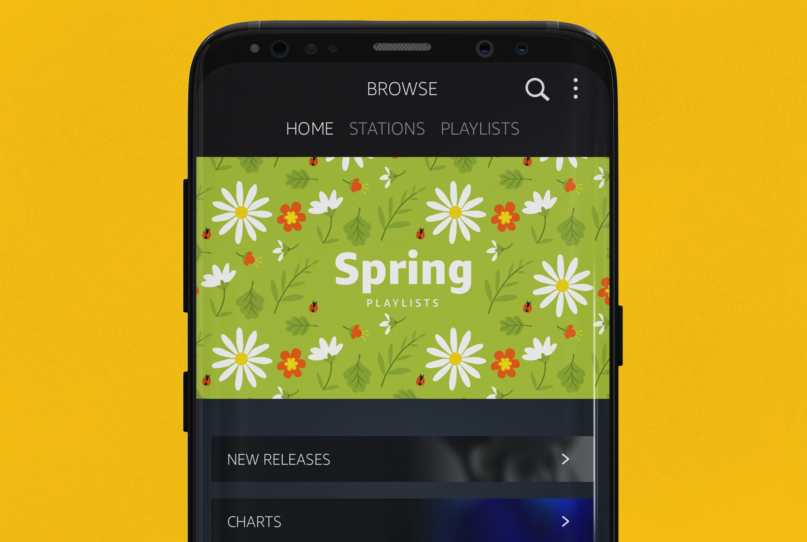 This marketing placement was ultimately eliminated in a subsequent app redesign when more content became available to Prime Music customers. However, this project laid the groundwork for the complex illustration system that Amazon Music uses now.