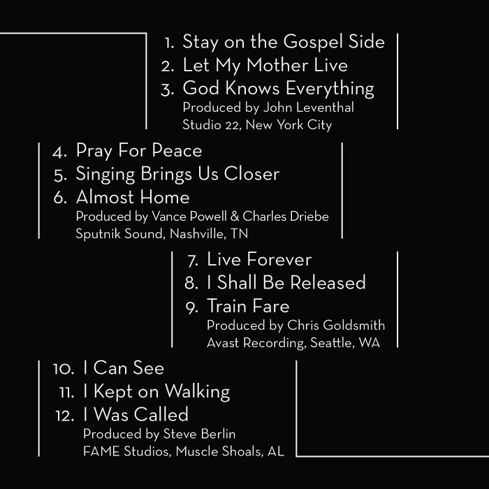 I wanted the sicker on the B-side of the album to be the illustration of the stain glass window that I designed for the back plate of the the CD package, so I needed to find a creative way to put the full track list on side A. Since the album is about going to heaven, I called the sides “This Side” and “The Other Side.”