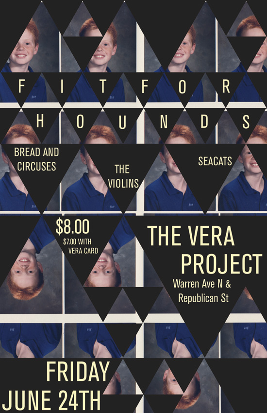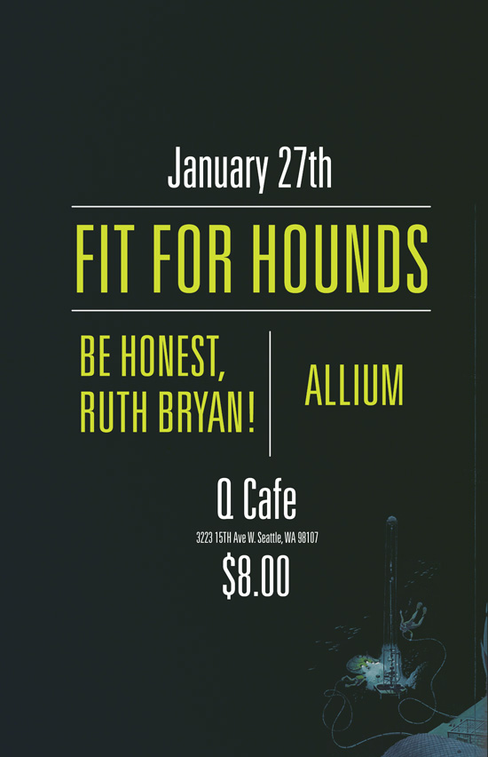 In 2011 I worked with local Seattle indie band, Fit For Hounds. My first project with them was a poster for a show and CD design for the two track release they were selling at that show.