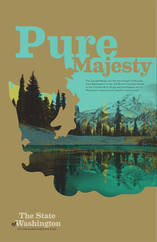 I created this series of Washington state tourism posters for a class at Cornish College of the Arts. I thought about what kind of design would appeal to a young backpacker on a budget.